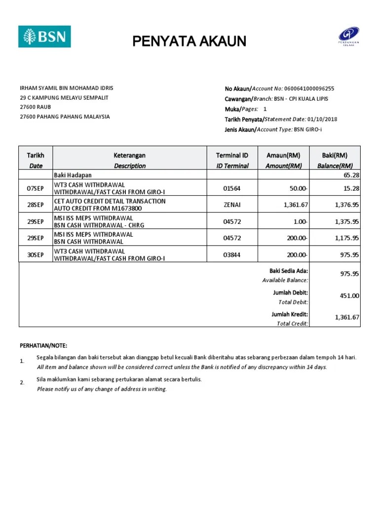 Penyata Contoh Statement Bank Bsn - Cara Dapatkan Bank Statement Bsn Penyata Kewangan